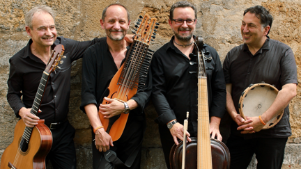 Rahmentrommeln und anderen aus dem Orient stammenden Perkussionsinstrumenten von Murat Coskun werden manchmal mit Obertongesang garniert; der geheimnisvolle Klang der Schlüsselfidel von Marco Ambrosini wirkt wie ein Zauberruf aus vergangenen Zeiten; die 400 Jahre alte Violone von Jan Krigovský bezaubert wie eine tief berührende Brise; die Gitarre von Rafael Catalá schwelgt zwischen Flamenco und mediterranen Gesängen.