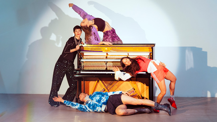 BUZZ ist ein vielsinniges Körperkonzert. Hier treffen Klangkörper aufeinander und verschmelzen miteinander – mal zärtlich, mal direkt. BUZZ lädt das Publikum ein, in Balladen einzutauchen, die von Füßen gestampft werden, in stille Momente, in denen Körper einander intensiv zuhören, und in Stimmen, die kraftvoll in den Raum tanzen. Dabei nutzen die vier Performerinnen alle Instrumente, die ihnen zur Verfügung stehen: Stimme, Atem und tanzende Körper entfalten sich im Dialog mit Klavier- und Elektronikklängen zu komplexen lebendigen Texturen. BUZZ ist ein experimentelles Multispektrum aus Tanz und Musik. Das Ensemble bringt den Raum zum Schwingen und stellt Seh- und Hörgewohnheiten spielerisch auf den Kopf.